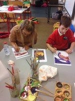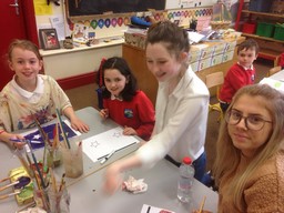 As Halloween approaches we decided to create some art to celebrate it. We decided upon a halloween mural and had great fun painting all of 30 pages and glueing them together.Thanks to Chloe, Bronagh & Aisling for their help with this project.
